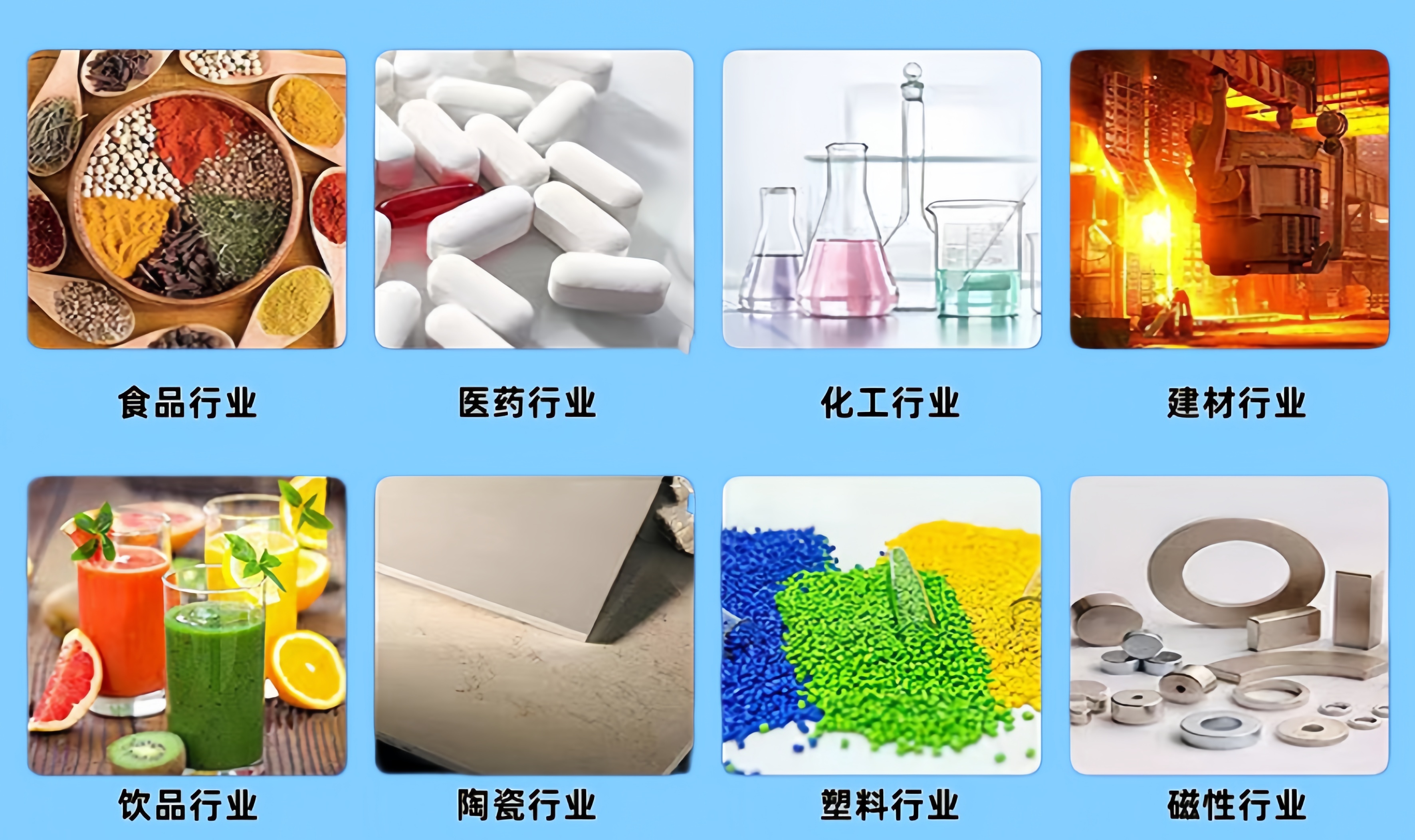 化工行業:樹脂、涂料、工業藥品、化妝品、油漆、中藥粉等。