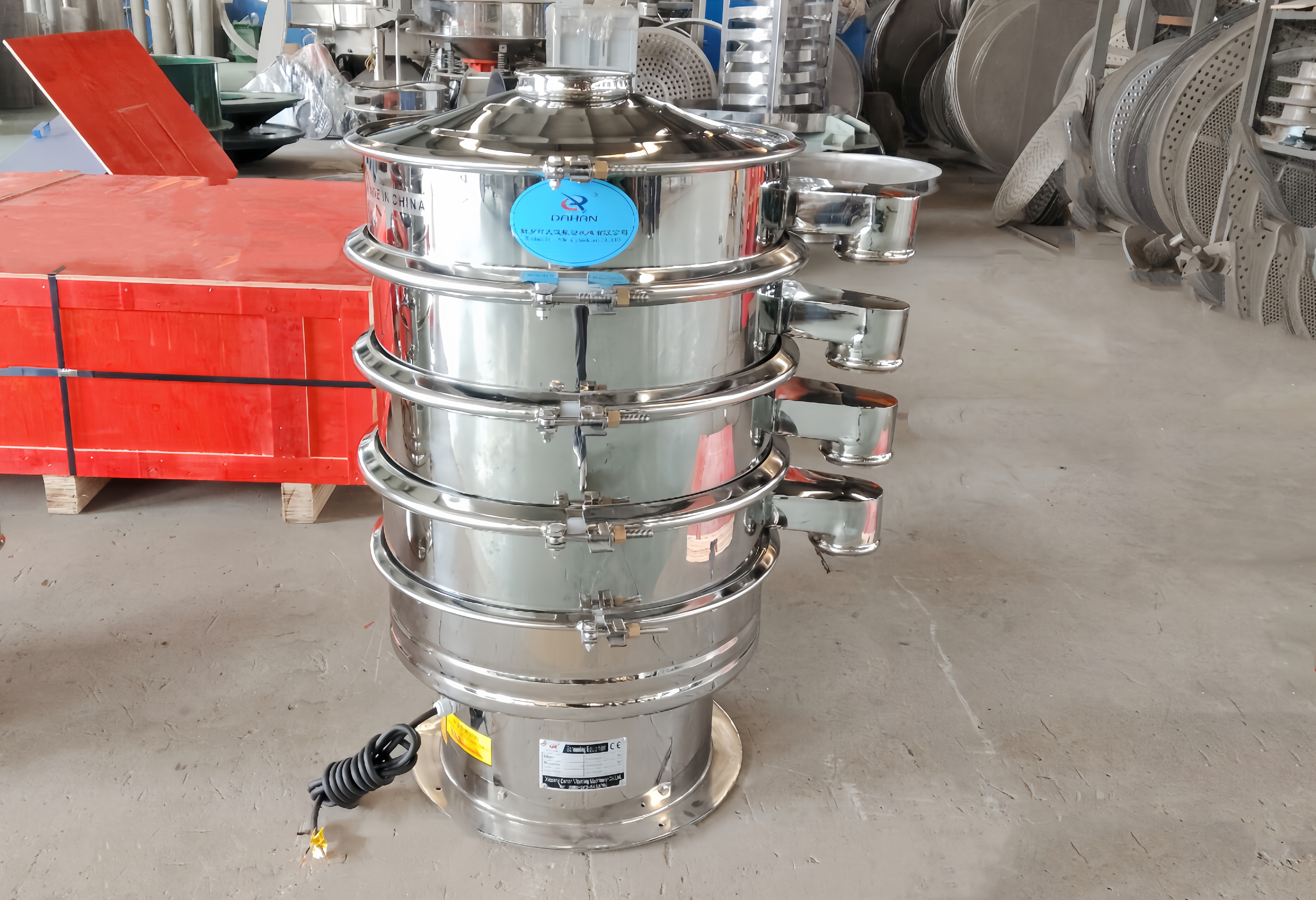 DH-600-3S型篩分機(jī)就是一臺(tái)直徑600mm,3層4個(gè)出料口的旋振篩,能夠一次性篩分出4種規(guī)格的物料,產(chǎn)品支持非標(biāo)定制