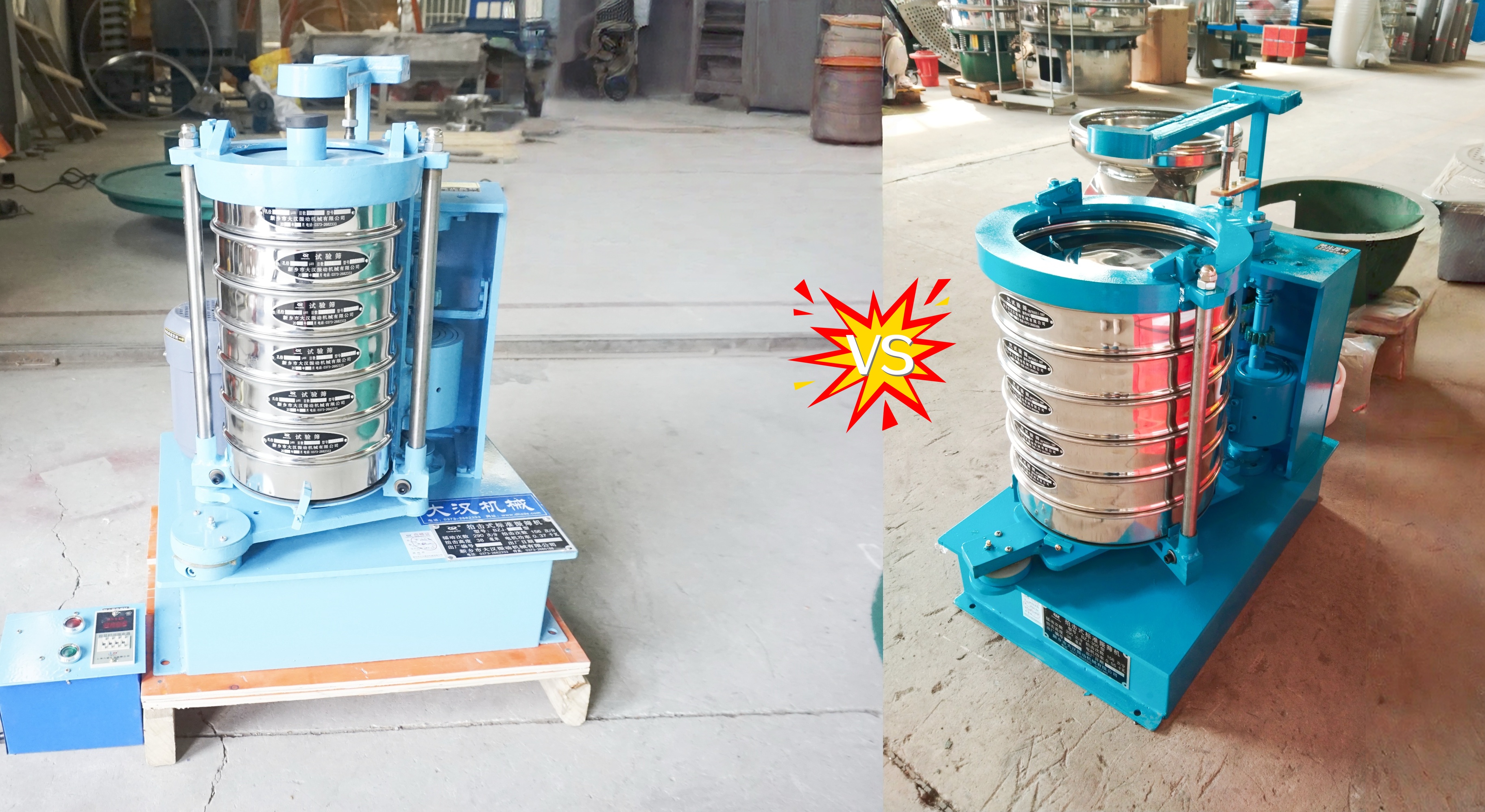 動力與結構:300 型配0.55kW電機,機身更厚重,外形尺寸約700×500×800mm,結構剛性更強,可穩定承載多層大直徑篩框與較重樣品,長時間高強度運行更耐用。200 型采用0.37kW電機,機身更輕巧,尺寸更小,占地少、移動與安裝更靈活。