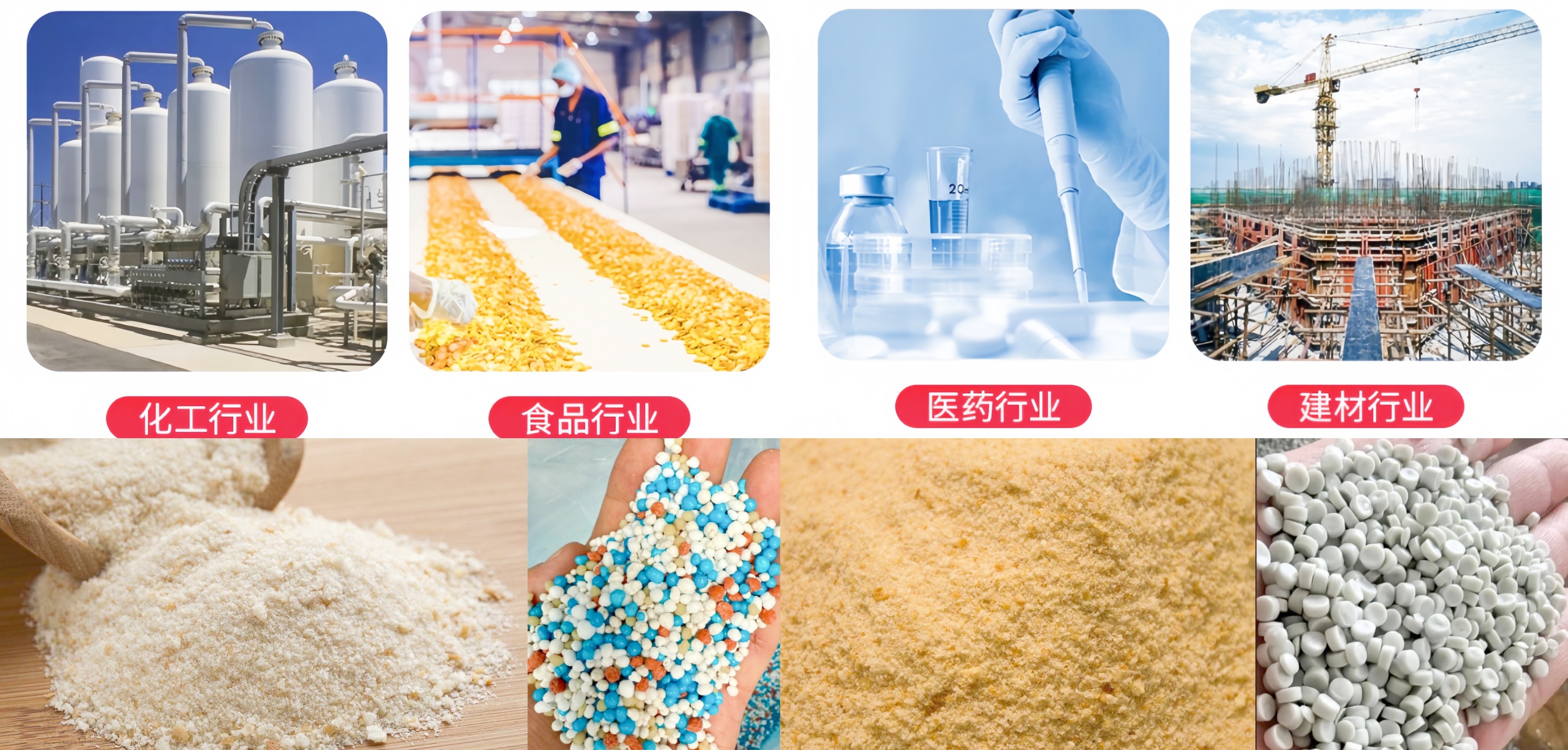 粉末類物料:包括各種細粉、微粉、超細粉末,比如面粉、淀粉、奶粉、白糖、香料粉、咖啡粉、辣椒粉、醫藥原料粉、顏料、染料、滑石粉、水泥粉、陶瓷粉、石英粉、礦石粉、金屬粉末、樹脂粉、炭黑、粉煤灰等,拍擊式結構能有效減少堵網,適合易團聚、粘性較大的粉末。