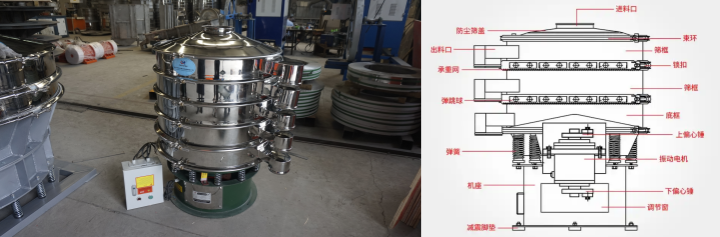 五層旋振篩:采用立式振動電機驅動,篩體做三維立體振動,物料在篩面上呈螺旋狀擴散運動。五層篩網(wǎng)可靈活配置 20-400目不同孔徑,可以添加超聲波系統(tǒng)能夠輕松應對超細粉末篩分,密封性能優(yōu)異,能有效防止粉塵外泄。